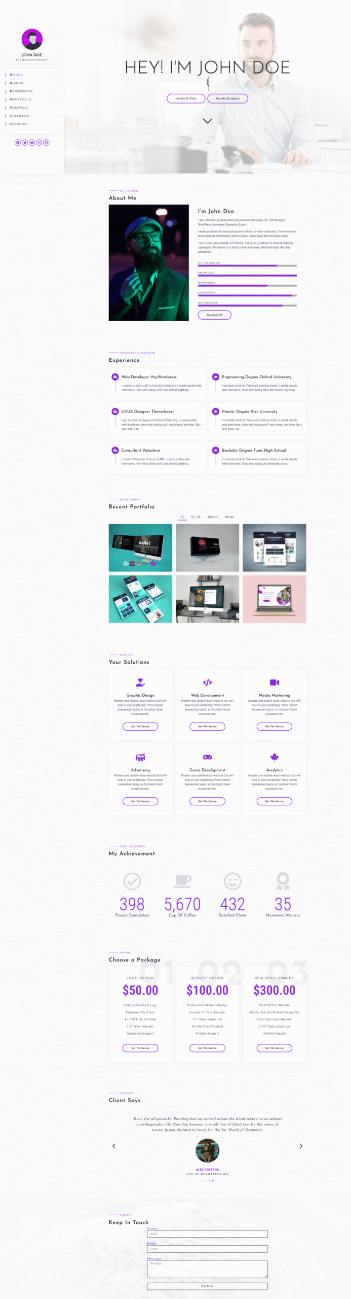 Create your beautiful single page portfolio website with our carefully designed template that’s responsive for all major devices.